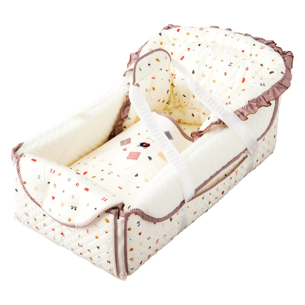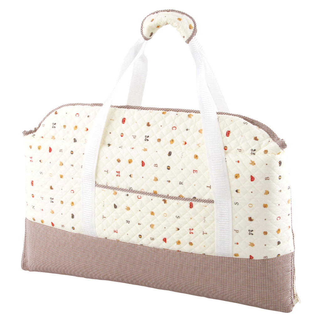 折りたためばバッグになるので持ち運びもらくらく。わた入りのやわらかい素材なので赤ちゃんも心地よく、丸ごと手洗いもできるので清潔で安心です。