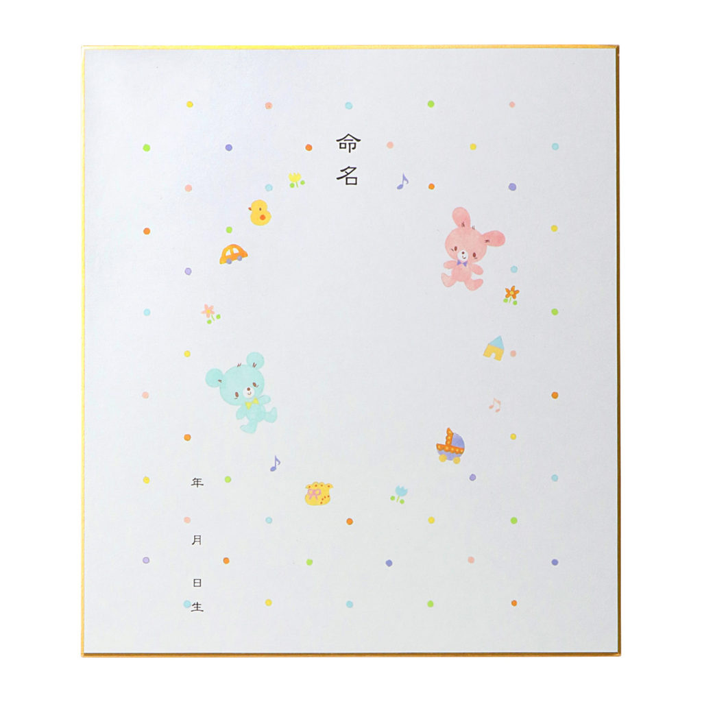 パステルカラーのかわいい命名紙。やわらかい色使いのうさぎとくま柄で男女問わずお使いいただけます。