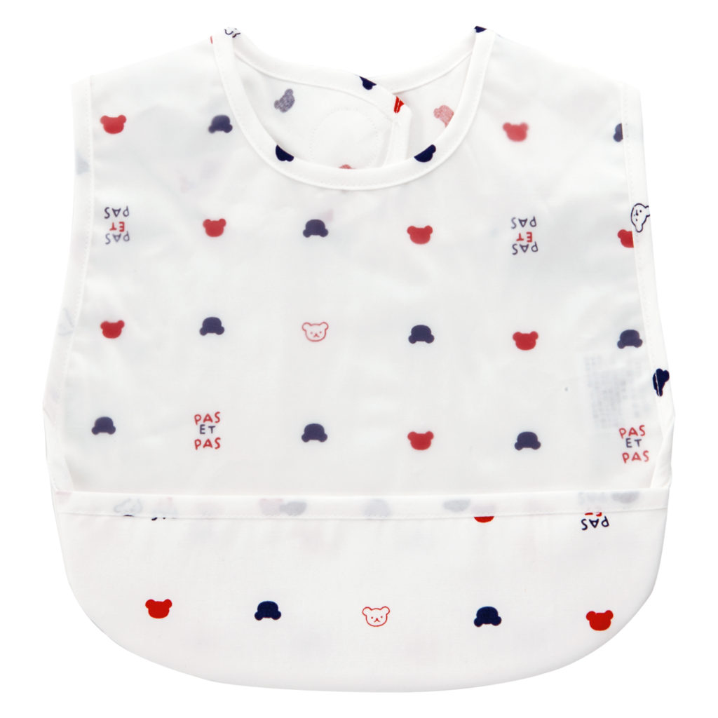 トリコロールカラーのくまさん柄がかわいいお食事用エプロンです。ポケット付きで食べこぼしをキャッチ。毎日のお食事を楽しくするエプロンです。食べこぼしをキャッチしてお洋服を守ります。