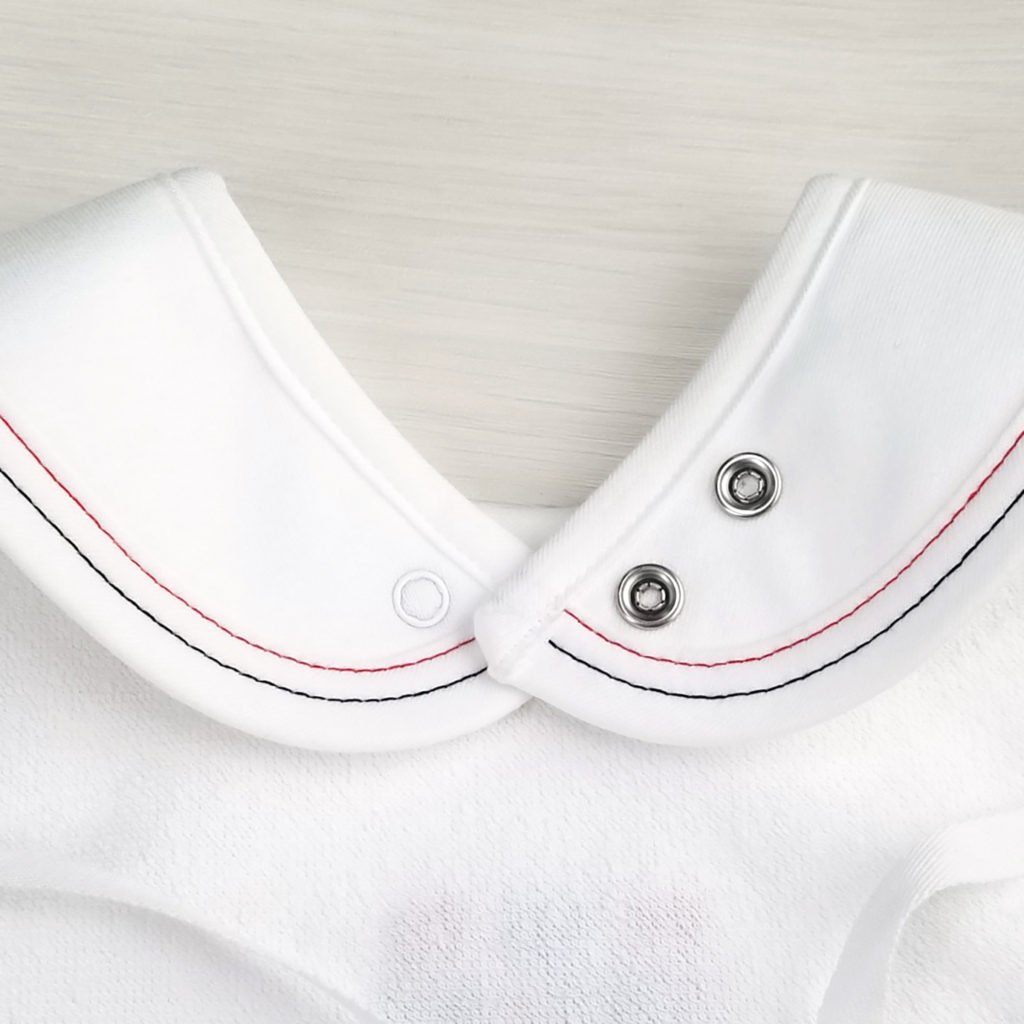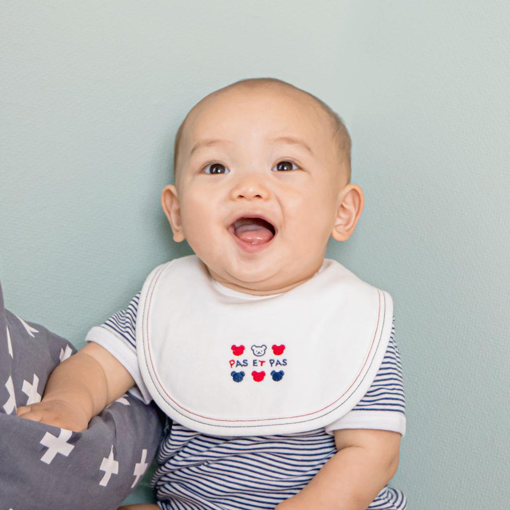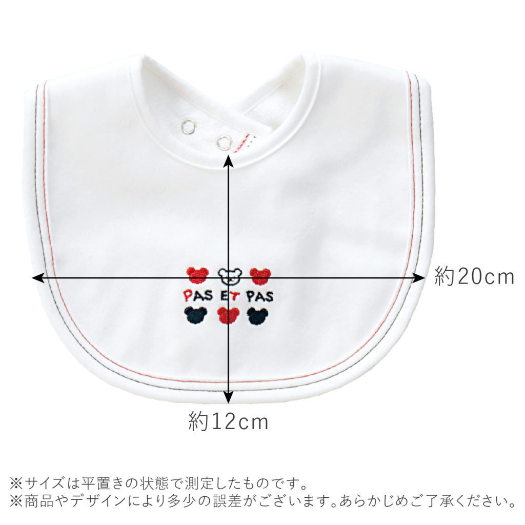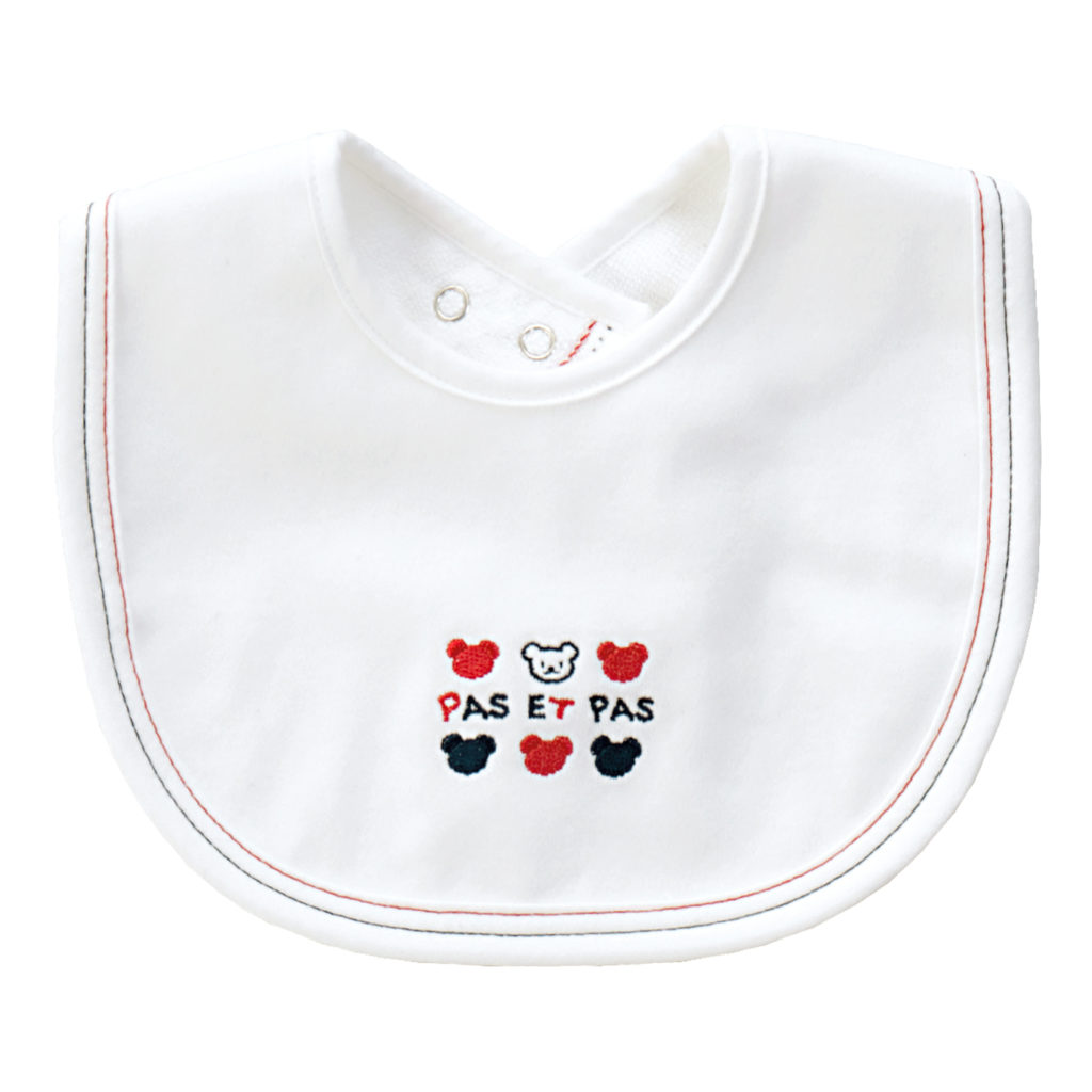 トリコロールカラーのかわいいくまさんが並んだ、シンプルなスタイです。裏面には防水パイルを使用しているので、機能性もばっちり!何枚あっても便利なスタイは、出産準備の必需品。プレゼントにも喜ばれる人気アイテムです。