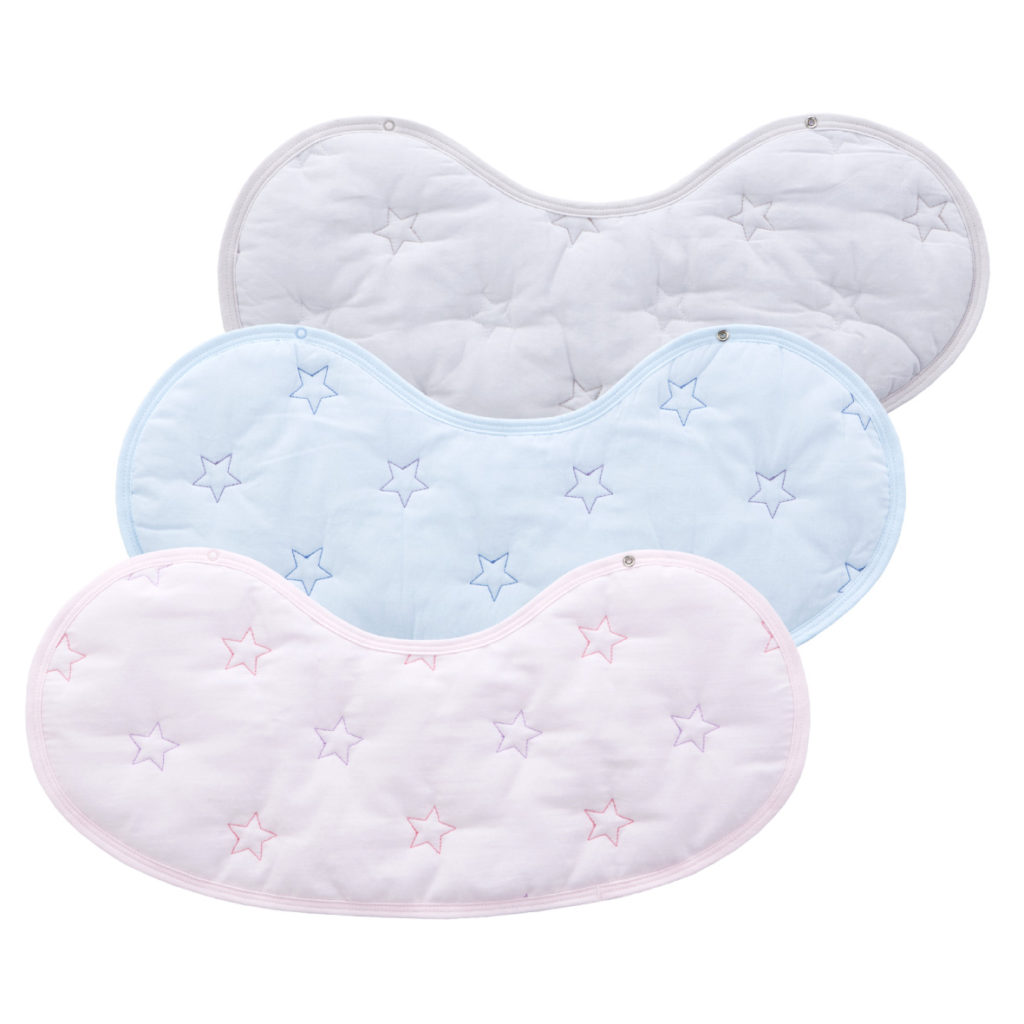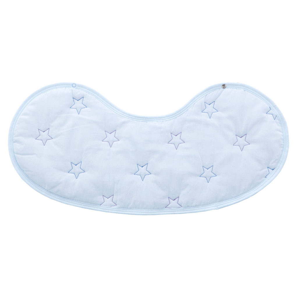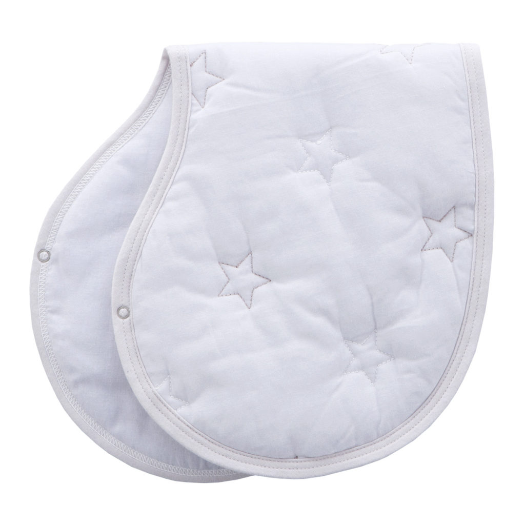よだれをしっかり吸収し、スタイとしても使える1枚二役の便利なクロスです。授乳後にママの肩にかけて、赤ちゃんのげっぷや吐き戻しでママのお洋服が汚れるのを防ぎます。スナップを留めると、赤ちゃんのよだれかけとしてもお使いいただけます。
