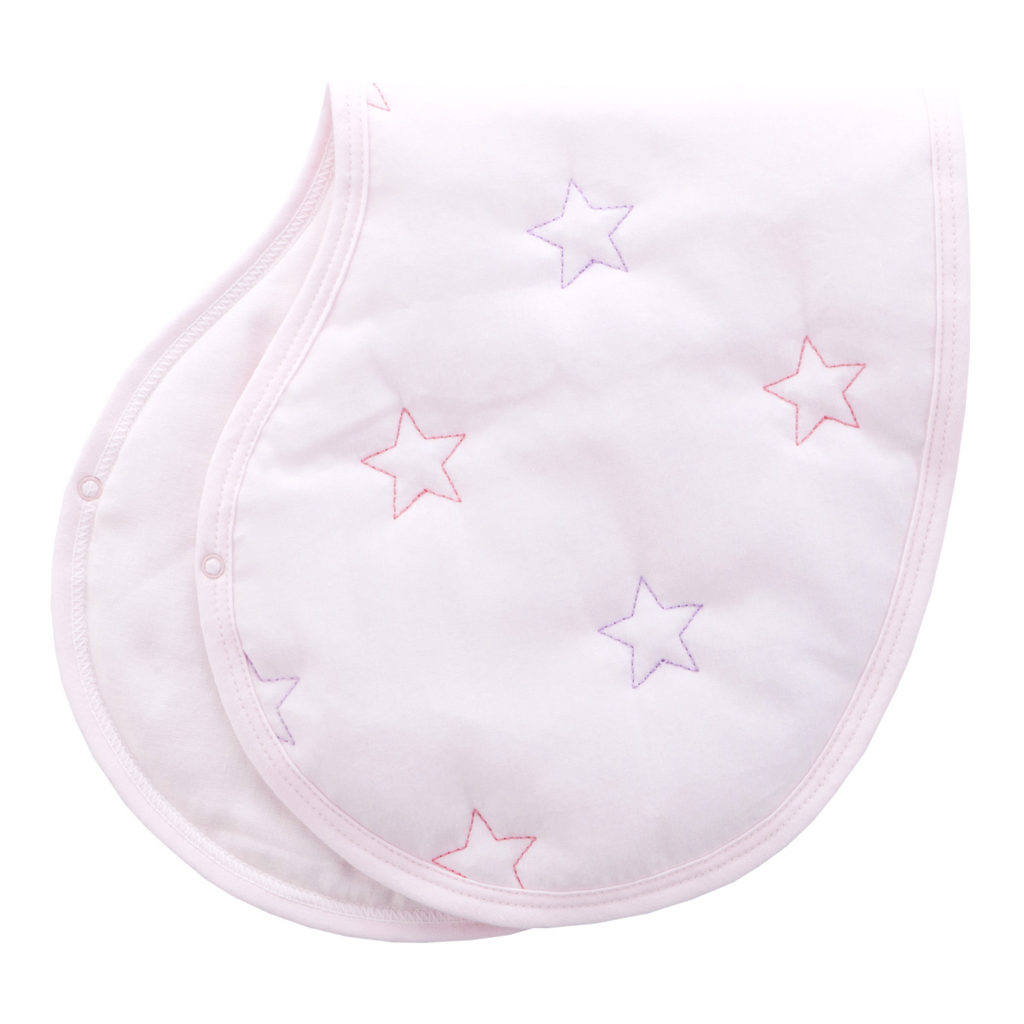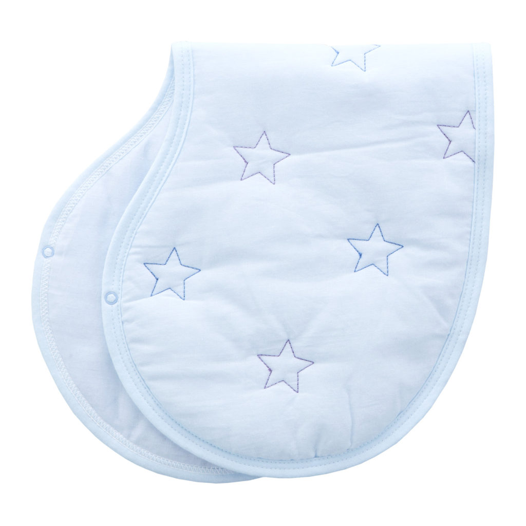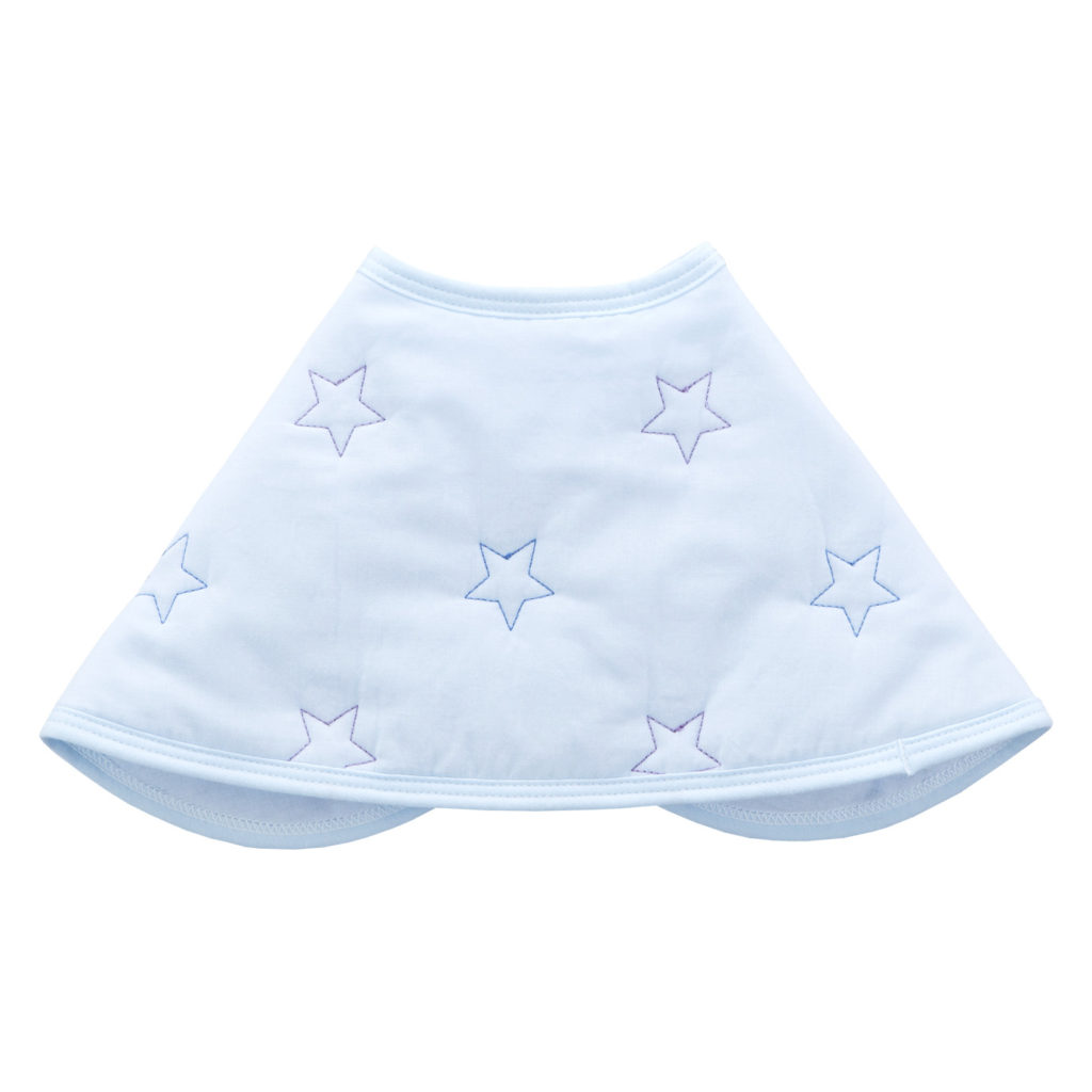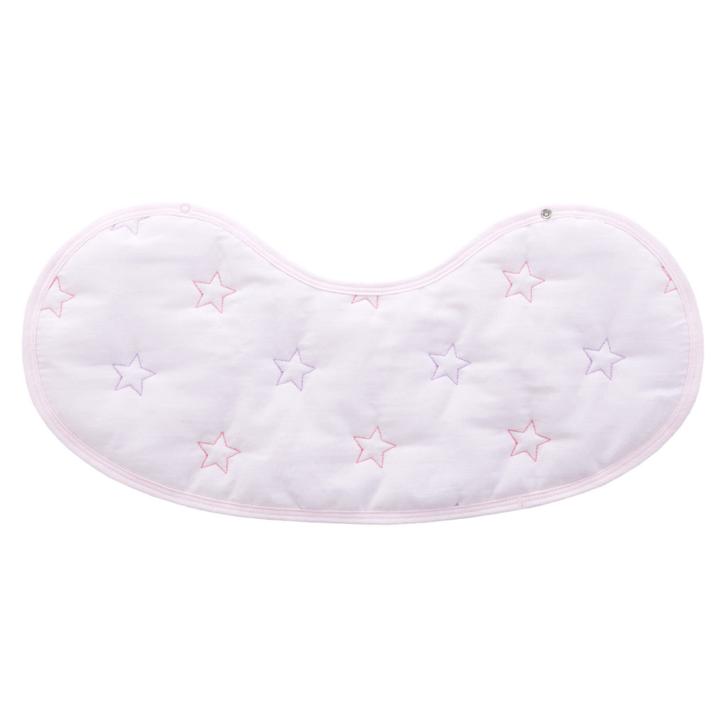 よだれをしっかり吸収し、スタイとしても使える1枚二役の便利なクロスです。授乳後にママの肩にかけて、赤ちゃんのげっぷや吐き戻しでママのお洋服が汚れるのを防ぎます。スナップを留めると、赤ちゃんのよだれかけとしてもお使いいただけます。
