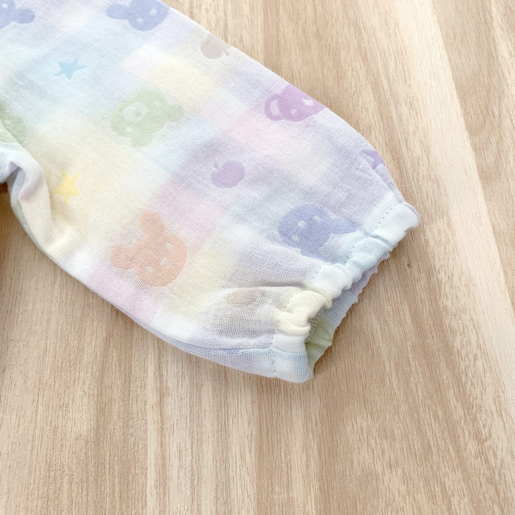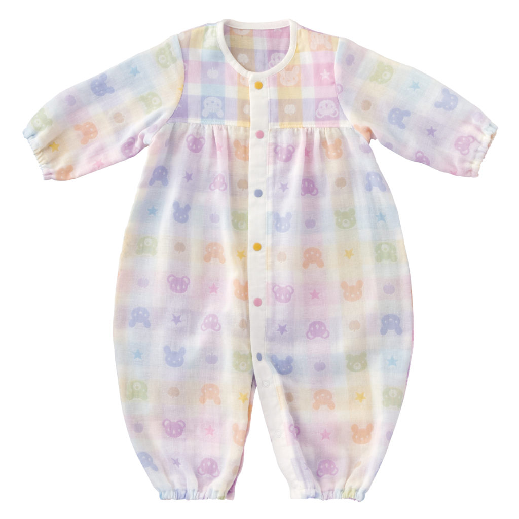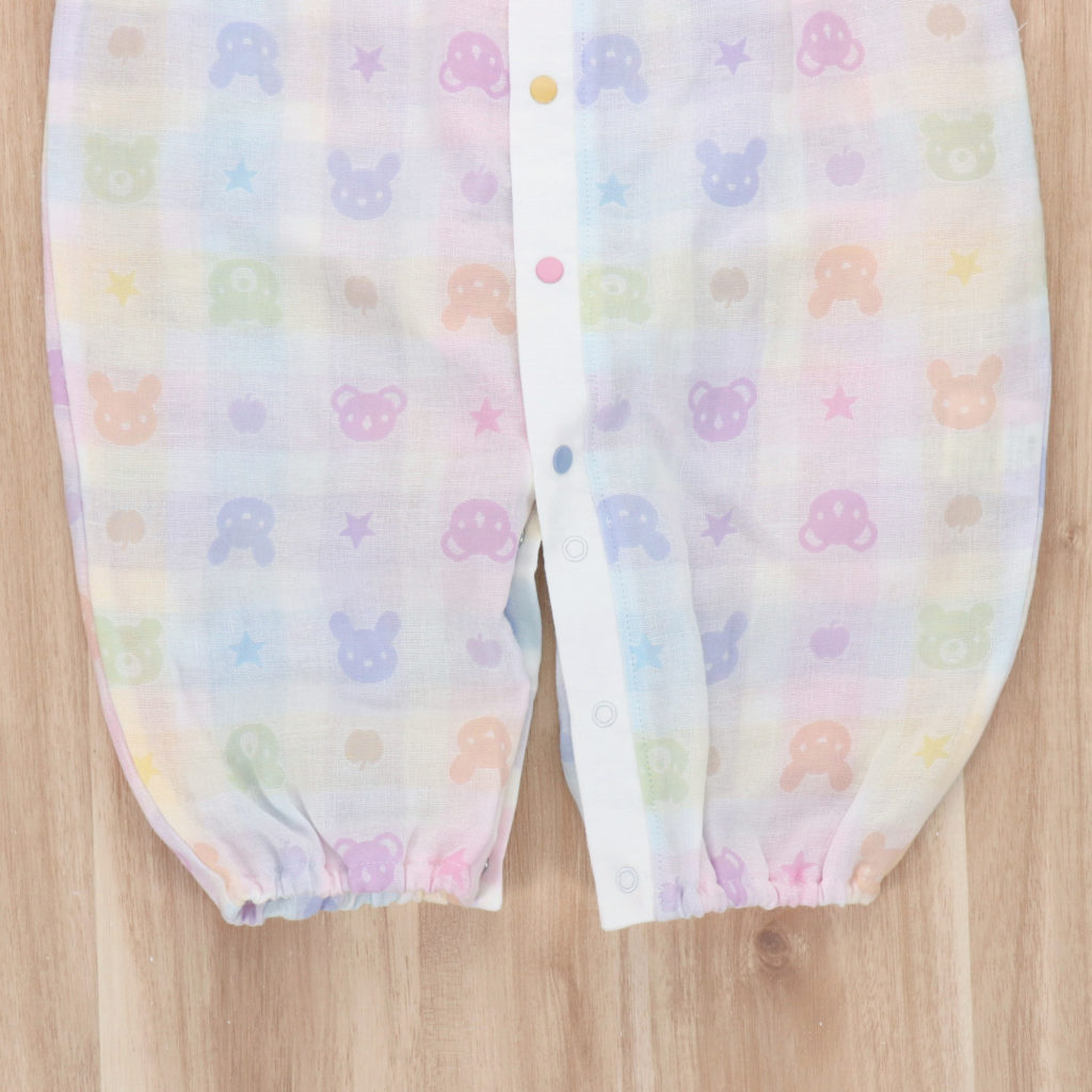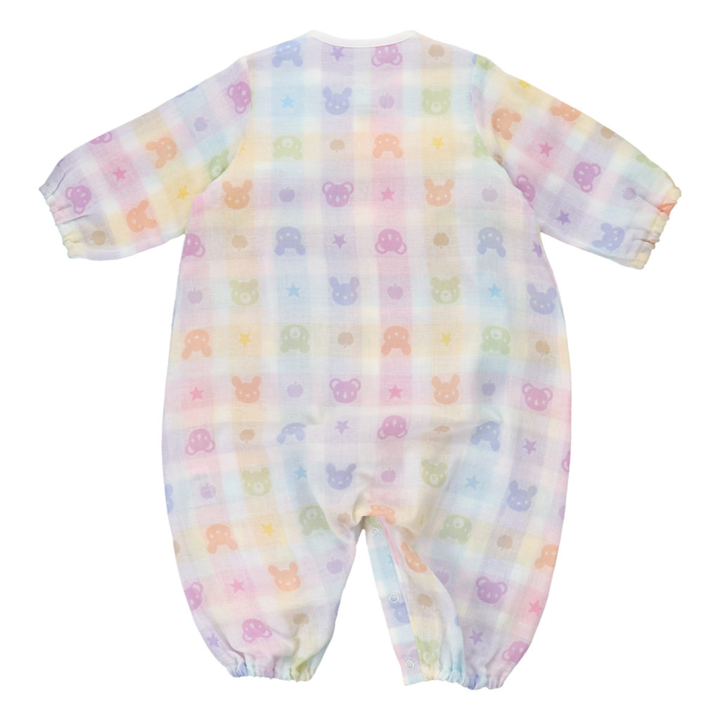 パステルカラーのチェックとどうぶつ柄がかわいいドレスです。さらっとした肌触りが気持ちいいガーゼ素材は春から秋まで活躍してくれます。