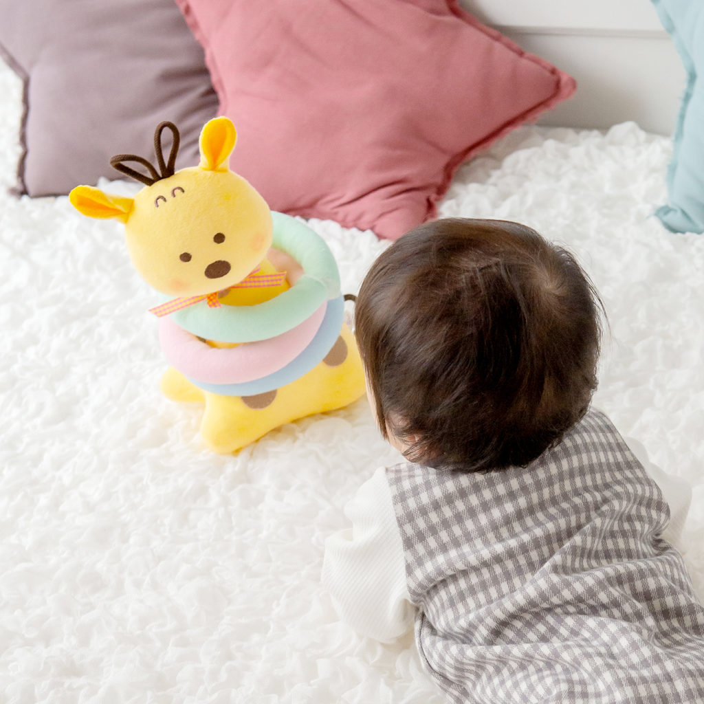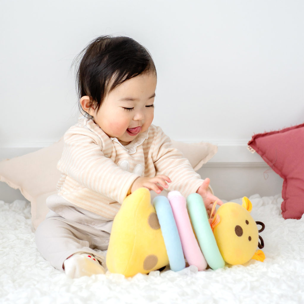 赤ちゃんがおすわりやハイハイを始める頃は行動力や集中力が発達する時期です。両手で物を握ったり、左右の手で持ち替えたり。赤ちゃんの成長に合わせて興味に応える知育玩具シリーズです。