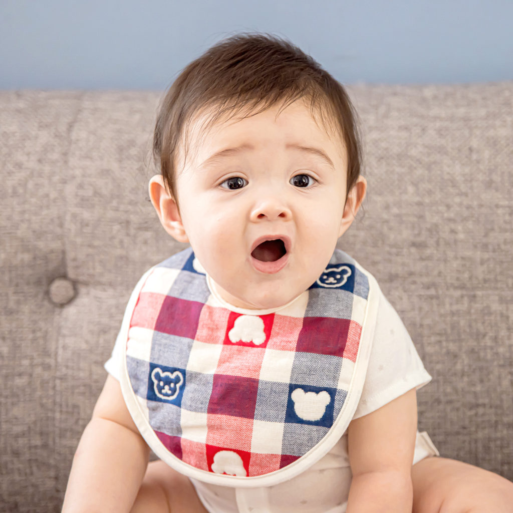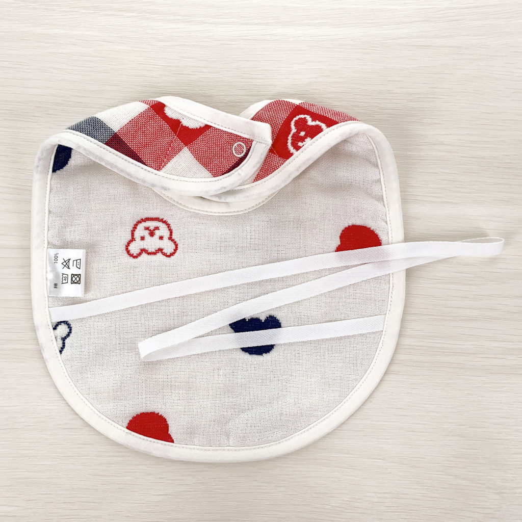 男女兼用のかわいいくま柄のやわらかな六重ガーゼで、よだれをしっかり吸収します。 何枚あっても便利なスタイは、出産準備の必需品。 プレゼントにも喜ばれる人気アイテムです。 スタイの裏側には、めくれて顔にかかる事を防止する紐が付いています。 中央で切るか、そのまま結んでお使いください。
